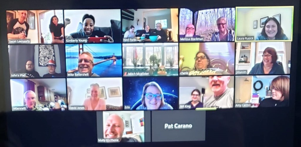 Below, you’ll find a picture of most of the attendees from our Virtual Happy Hour. We will very likely do more of these to help get through what we’re all experiencing.
