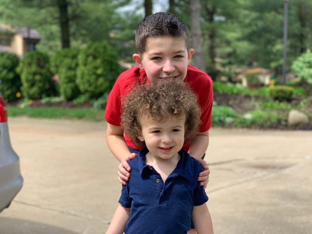 (Jackson, 12, below in the red hanging out with his little brother, Sebastian, 2).